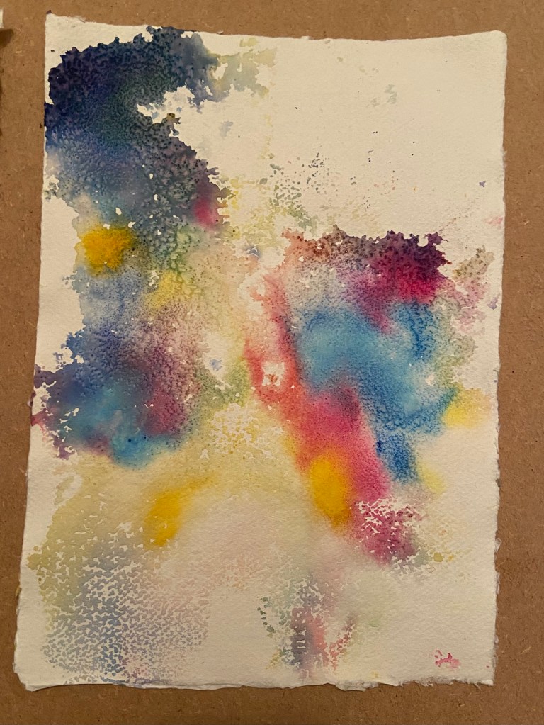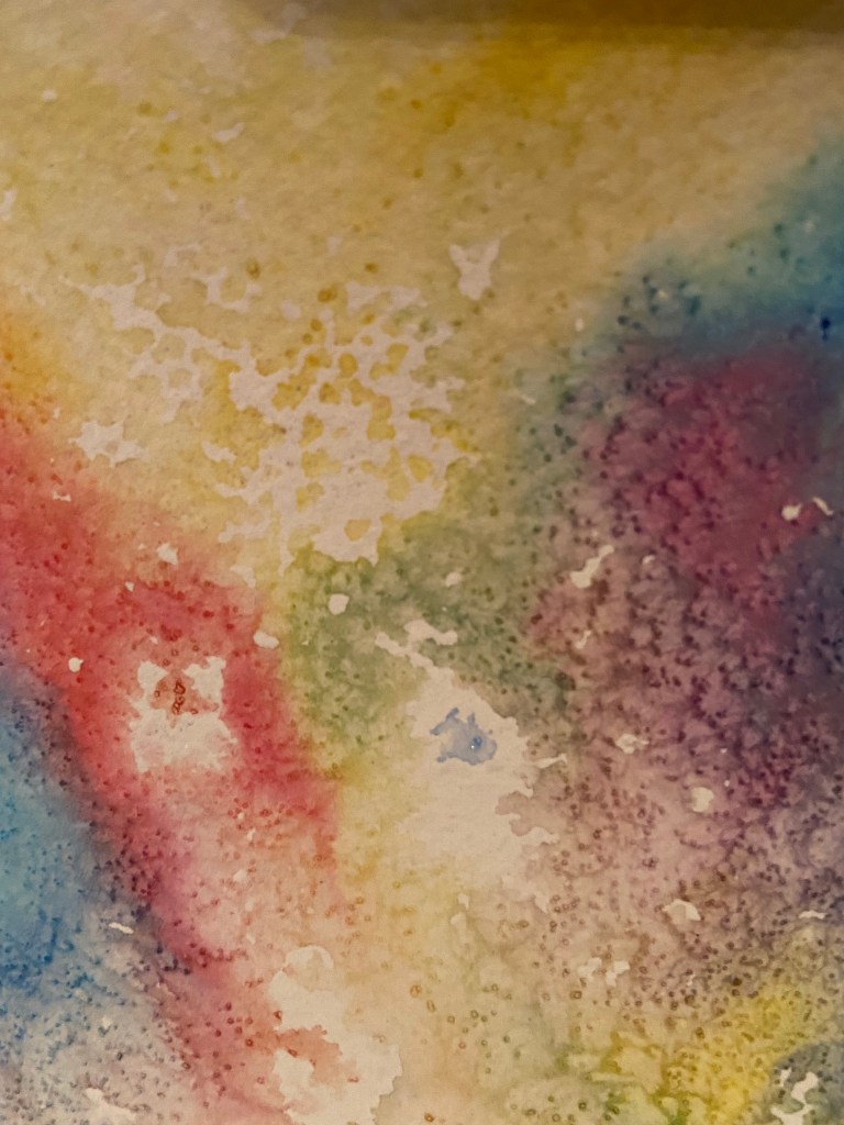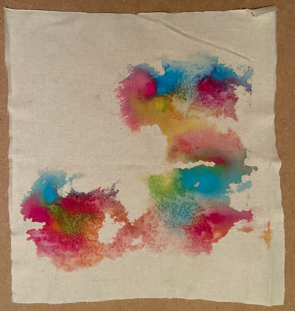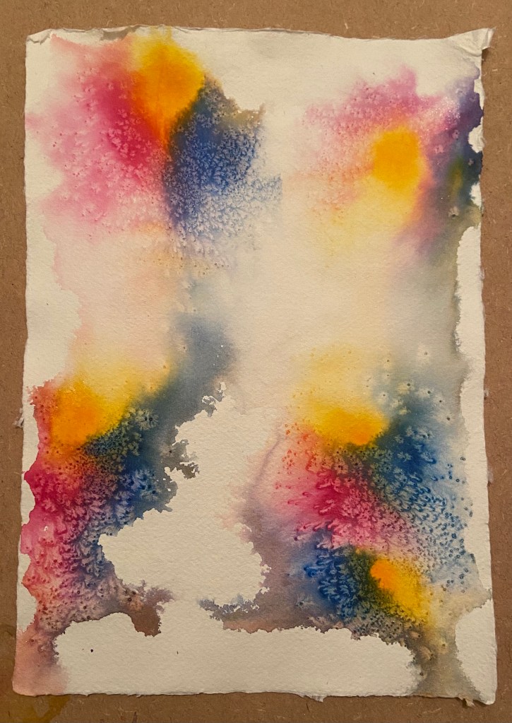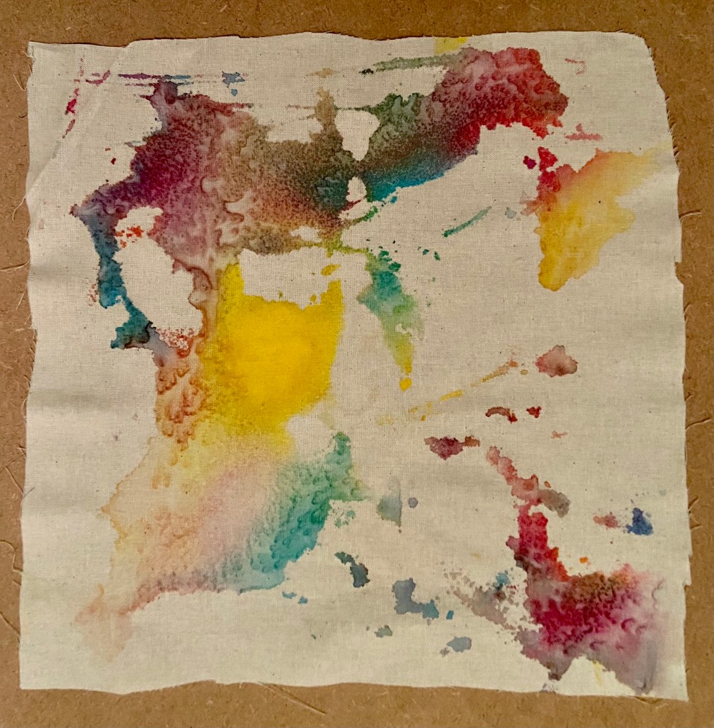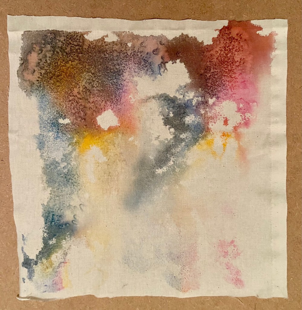 I was working on something I wanted to look quite ethereal so I first sprayed the surface of an acrylic offcut with water, then dropped the ink on, then wet the fabric, or paper and then placed it over the fabric. When you have done this you can add salt to make starbursts. There are other things you can splash on like bleach for other effects. You don’t really know how it will turn out. You could ruin the fabric, place it badly, muddy it, leave no white space, barely pick up and colour. I must like it though because in one form or another I have always done this. I love color. It brings me joy. I need colour and distraction and fun.