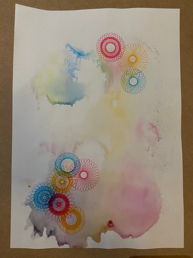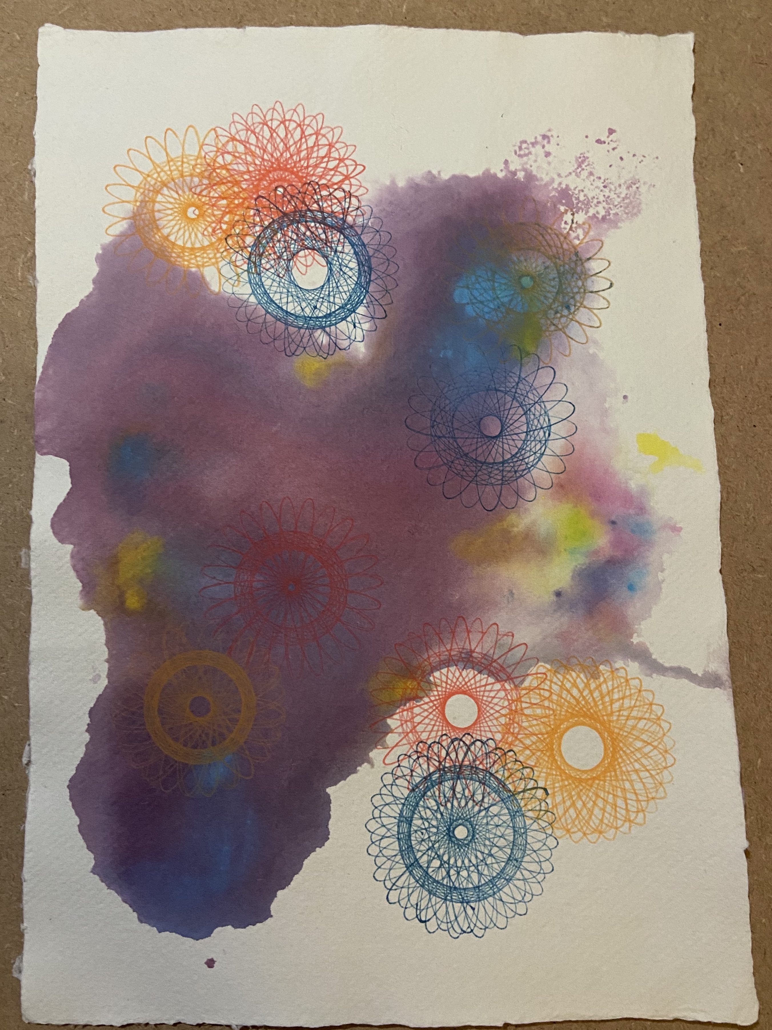 That being said I saw a used spirograph and grabbed it and I love it. When I was young I don’t think there was a lot of excess. I didn’t have a spirograph until later. I got given a compass and shown how to make similar things using maths. FUN!! It did keep me quiet though as there were endless variations. My point being spirographs remind me of having ADHD. Having to keep me busy and quiet. How much I loved the endless possibilities. How I wanted to methodically make every possible combination. Thinking about colour combinations. Filling sheeps. Loving the spirals and intricacies and connections. Spirographs are very ADHD. Endless connections, scattered and complicated and hard to untangle, darting from here to there. It is chaotic and methodical and planned and unpredictable and beautiful.