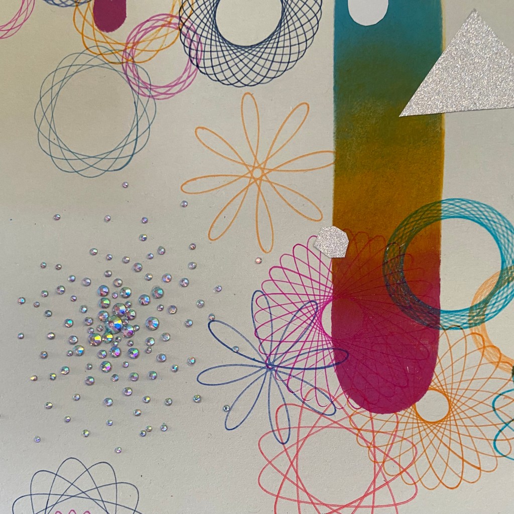 The best thing I did was switching from inked backgrounds as they were too distracting and you can actually see the spirographs now. I also love the addition of shapes and the way that the images grew organically which felt a lot more natural. In addition I am happy that I was able to let go of pieces that were not working at each stage so that I was not overwhelmed with terrible images as I usually end up.