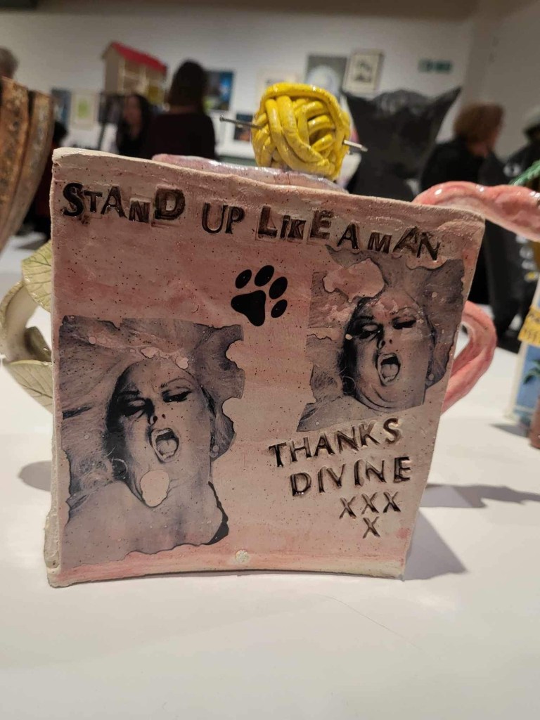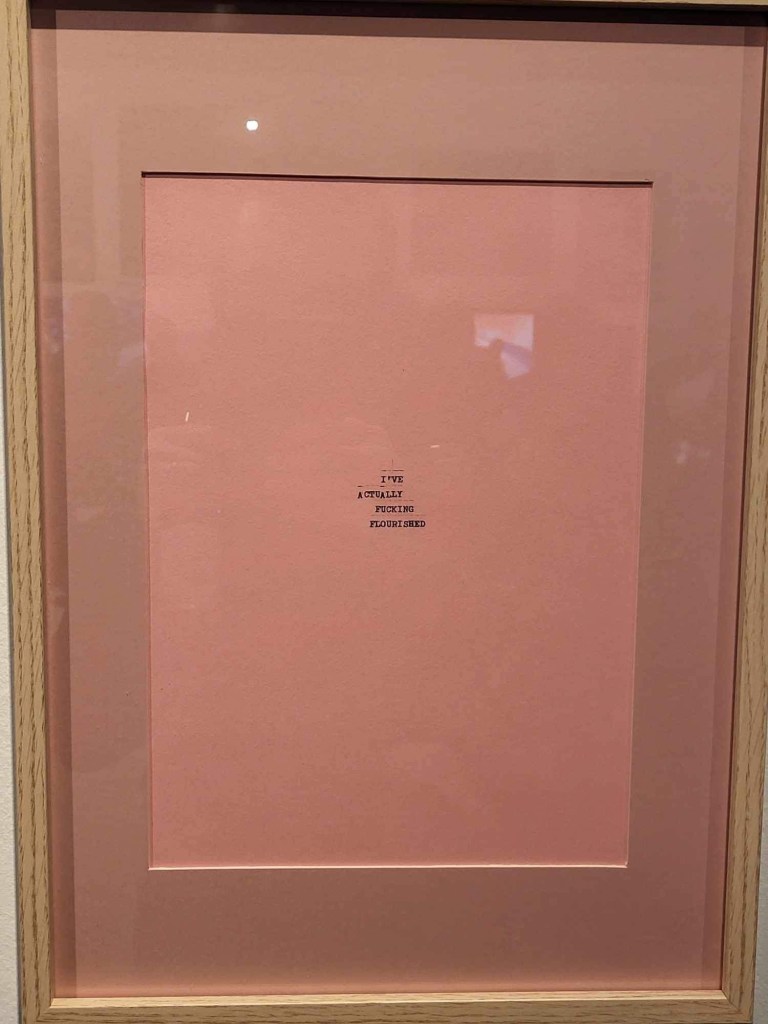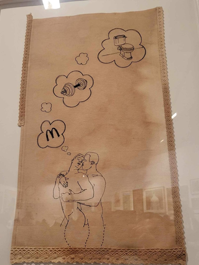 I loved so many things as we walked around. I didn’t go seeking out my work, and went in the opposite direction to the flow of things as everyone was bunching and it would be a bit more chill to go against the flow. Below are the things that spoke to me the most. There was such variety and so much was so well executed and had such great ideas behind them. I sadly didn’t keep the booklet so I dont have the names of the artists but I have found you can google image search some of them to find their presence on the internet. I drawn most to textile, colour, gender, sexuality, silliness, and the self.